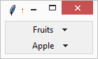 myMenu = OptionMenu(root, myVar, ‘select’, ‘Fruits’, ‘Vegetables’)